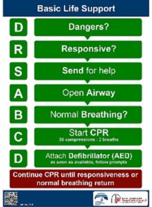 - If unresponsive and not breathing –> DRSABCD